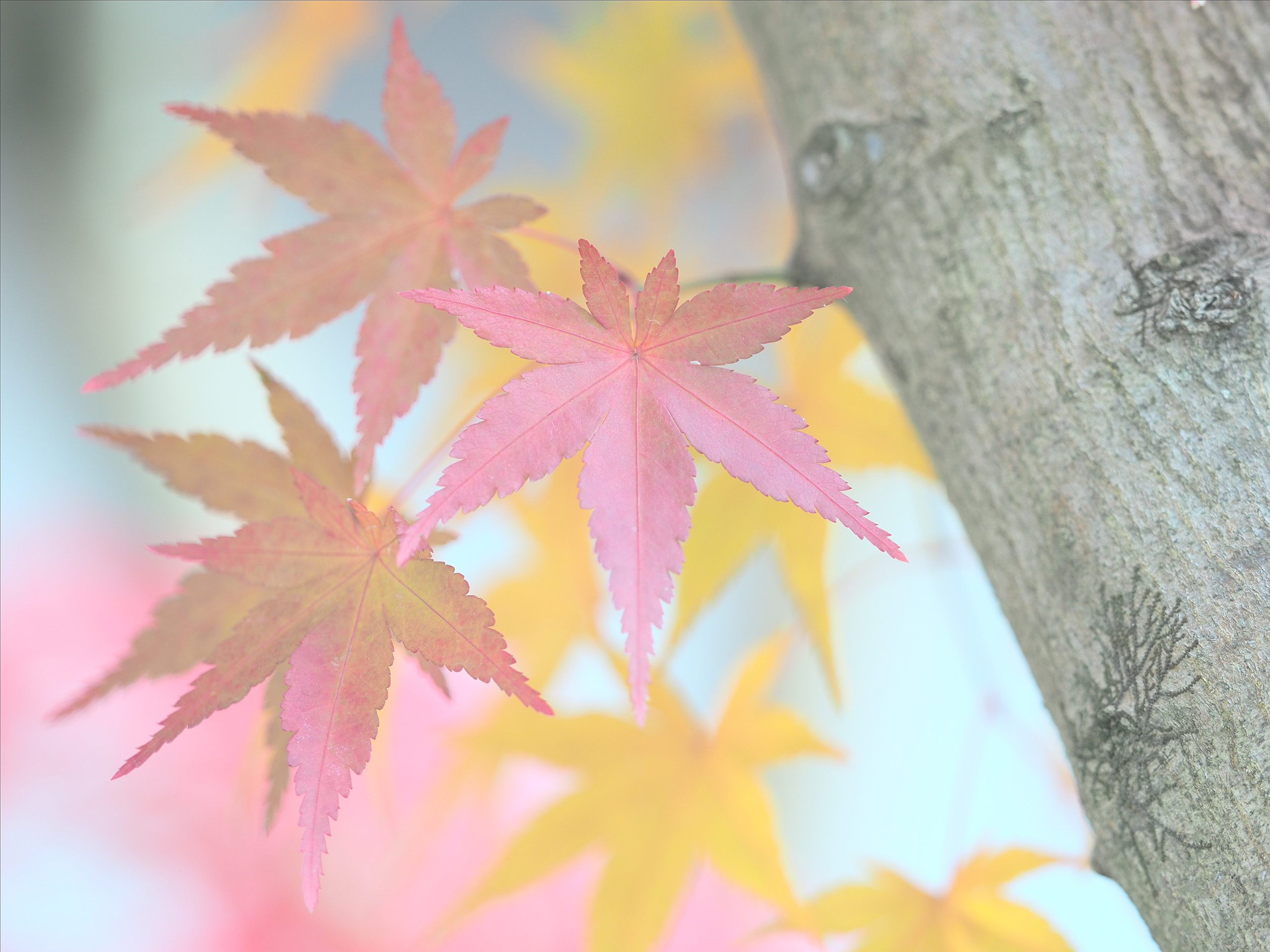 天候や時間帯にもよりますが、逆光で露出を上げたこと、またホワイトバランス(色温度)を下げたことでふんわりしつつ爽やかな「朝の紅葉」といった印象の1枚となりました。