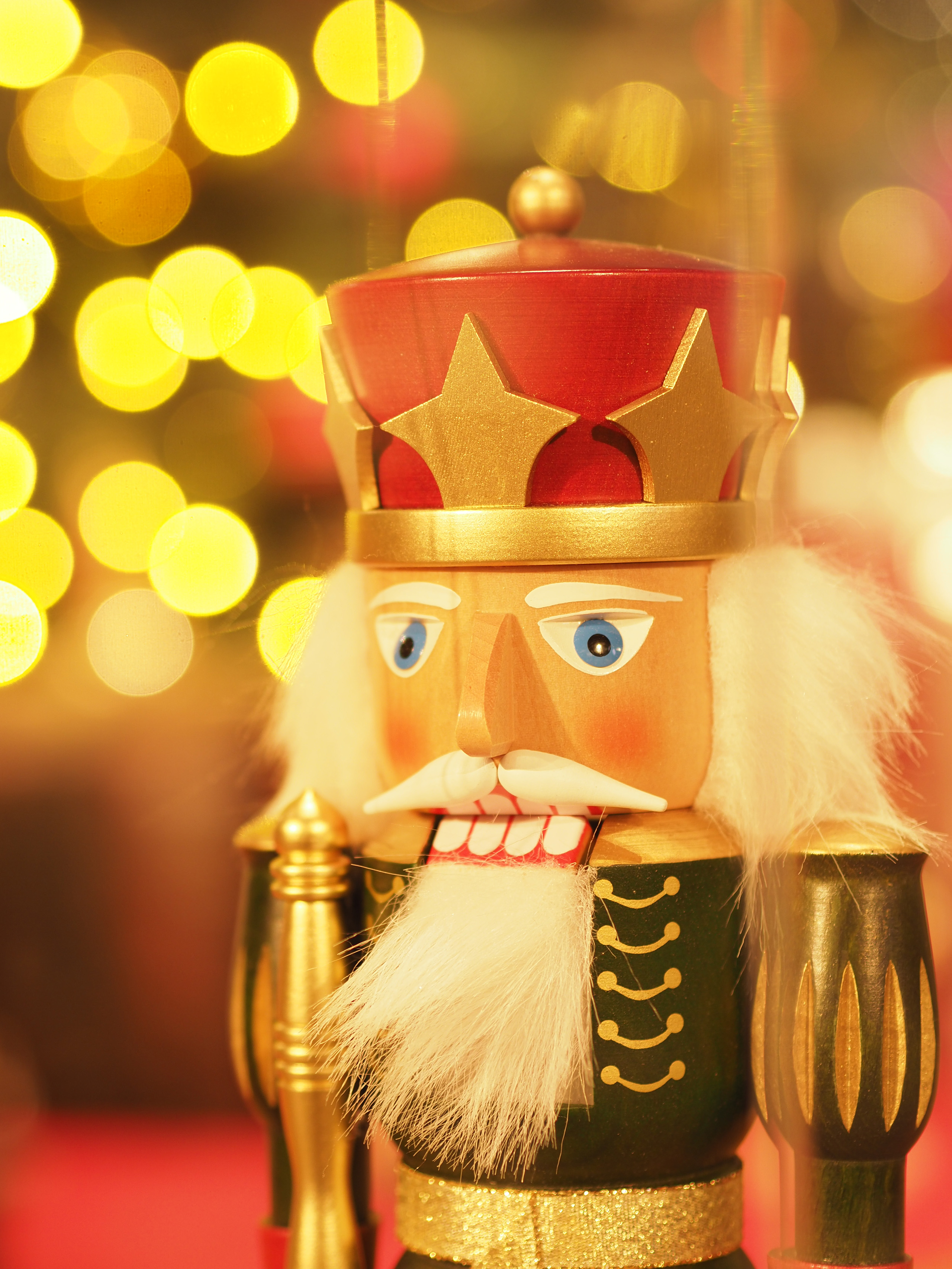 45mm F1.8の単焦点レンズを使ってクリスマスマーケットのくるみ割り人形をクローズアップ。絞りの開放値が明るいので、手持ちでもISO感度を抑えることができます。絞り開放で撮影したので背景に輝く丸いボケを入れることもできました。
