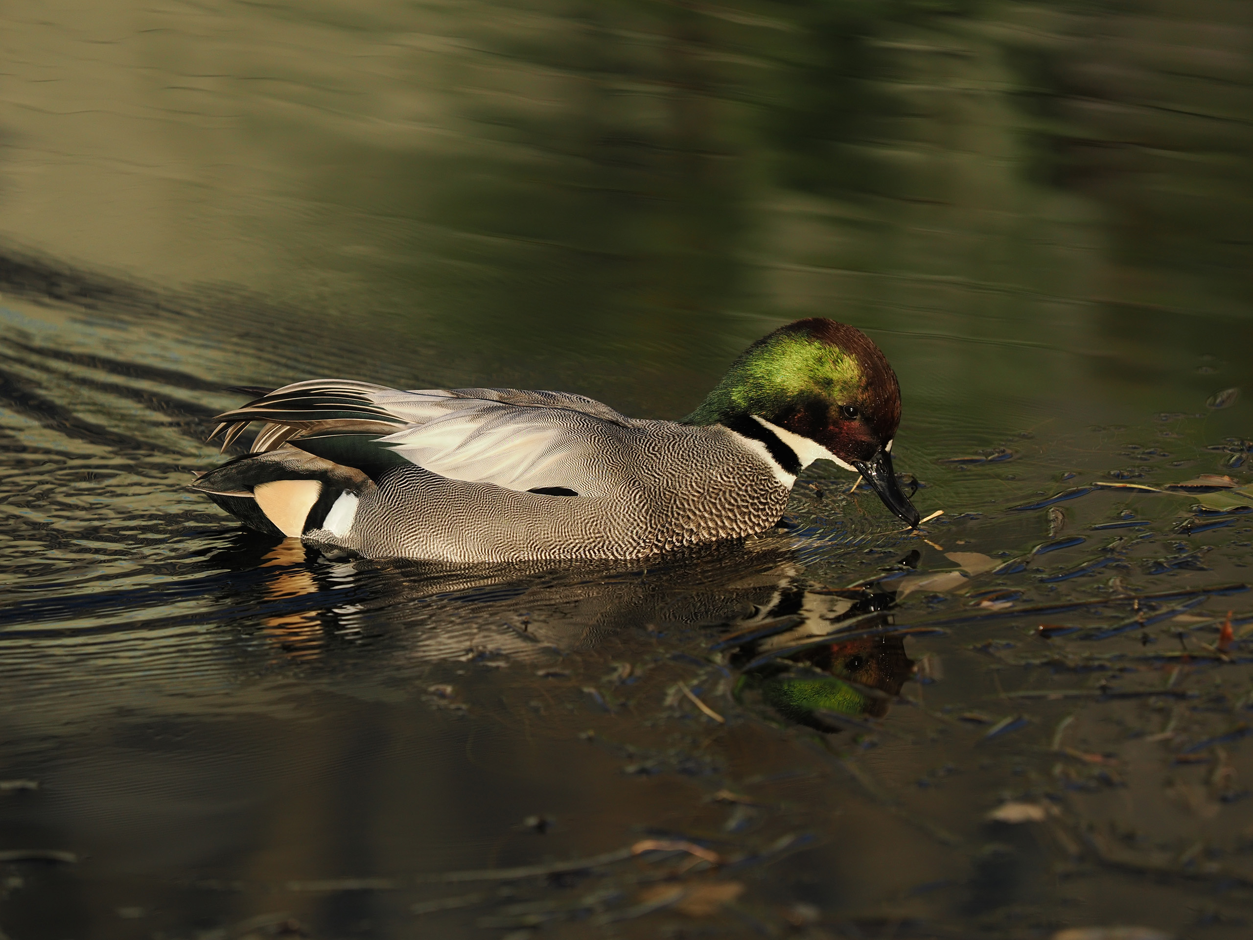 都会の水辺で越冬していたヨシガモ。すぐ横を通行人が通っても気にしていなかったので、400mm相当でも十分な大きさに撮影できた。より自然度の高いところでは警戒心が強くなるので、もう少し長いレンズが欲しくなるが、都会の水鳥には便利な選択肢になる。