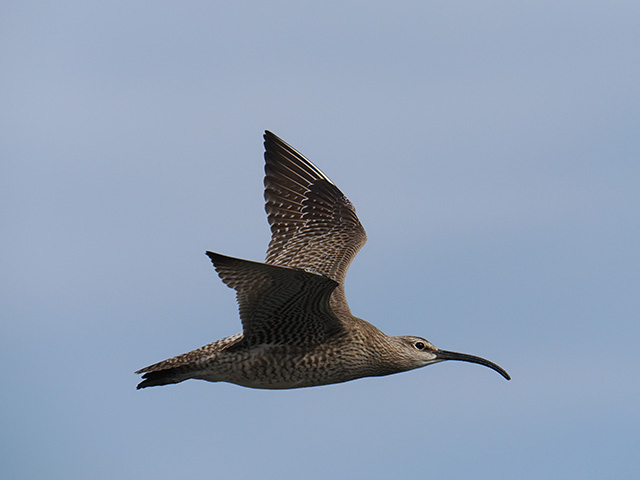 干潟上空を飛ぶチュウシャクシギをアップで捉えた。焦点距離を稼ぐためには、テレコンバーターを使用する方法もある。レンズの明るさに注意しながら活用したい。