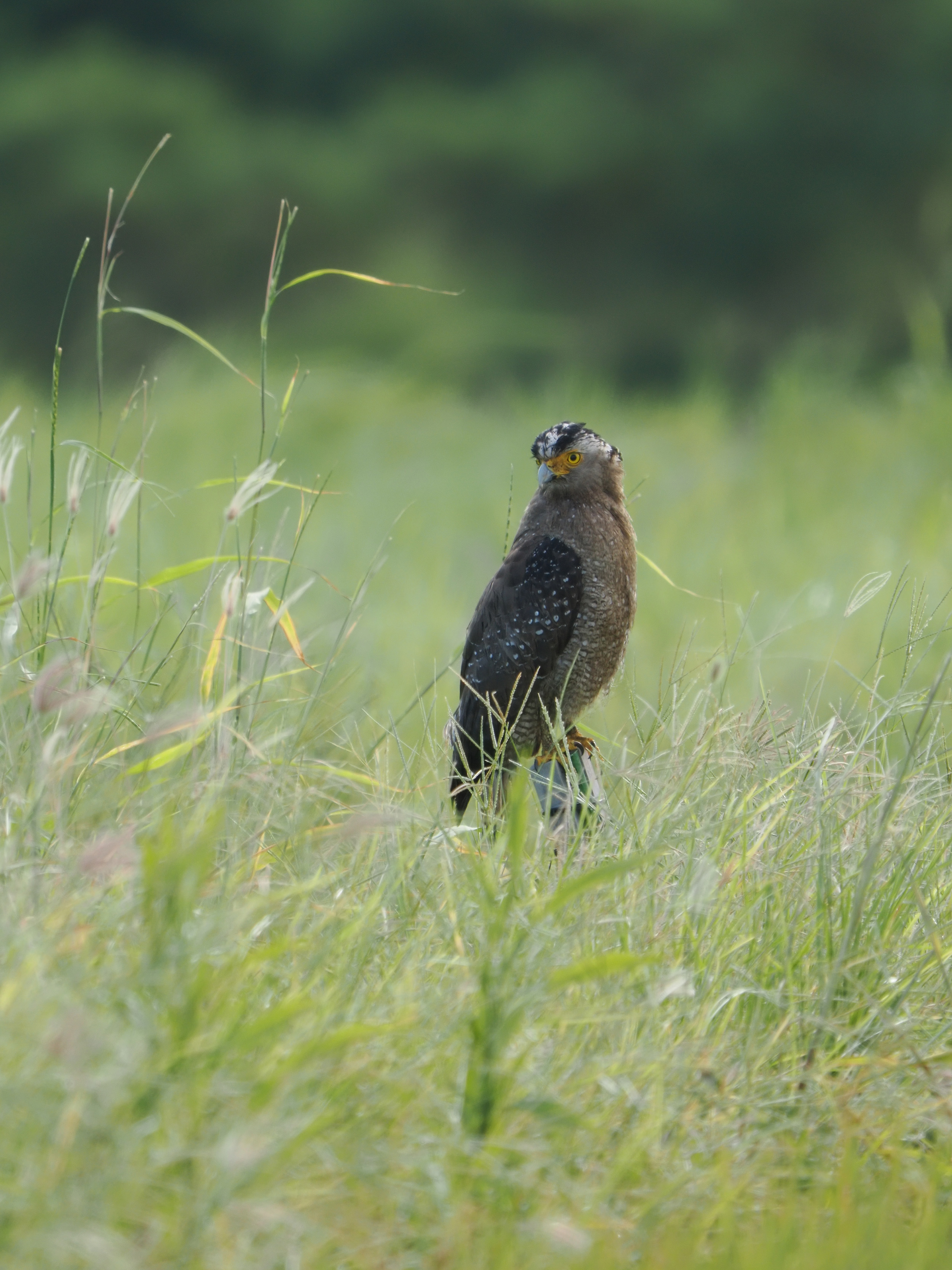 南西諸島に生息しているカンムリワシ。餌探しを邪魔しないよう、距離を置いて撮影することにした。陽炎の収まった夕方に撮影した。