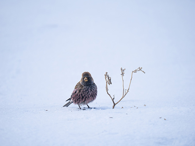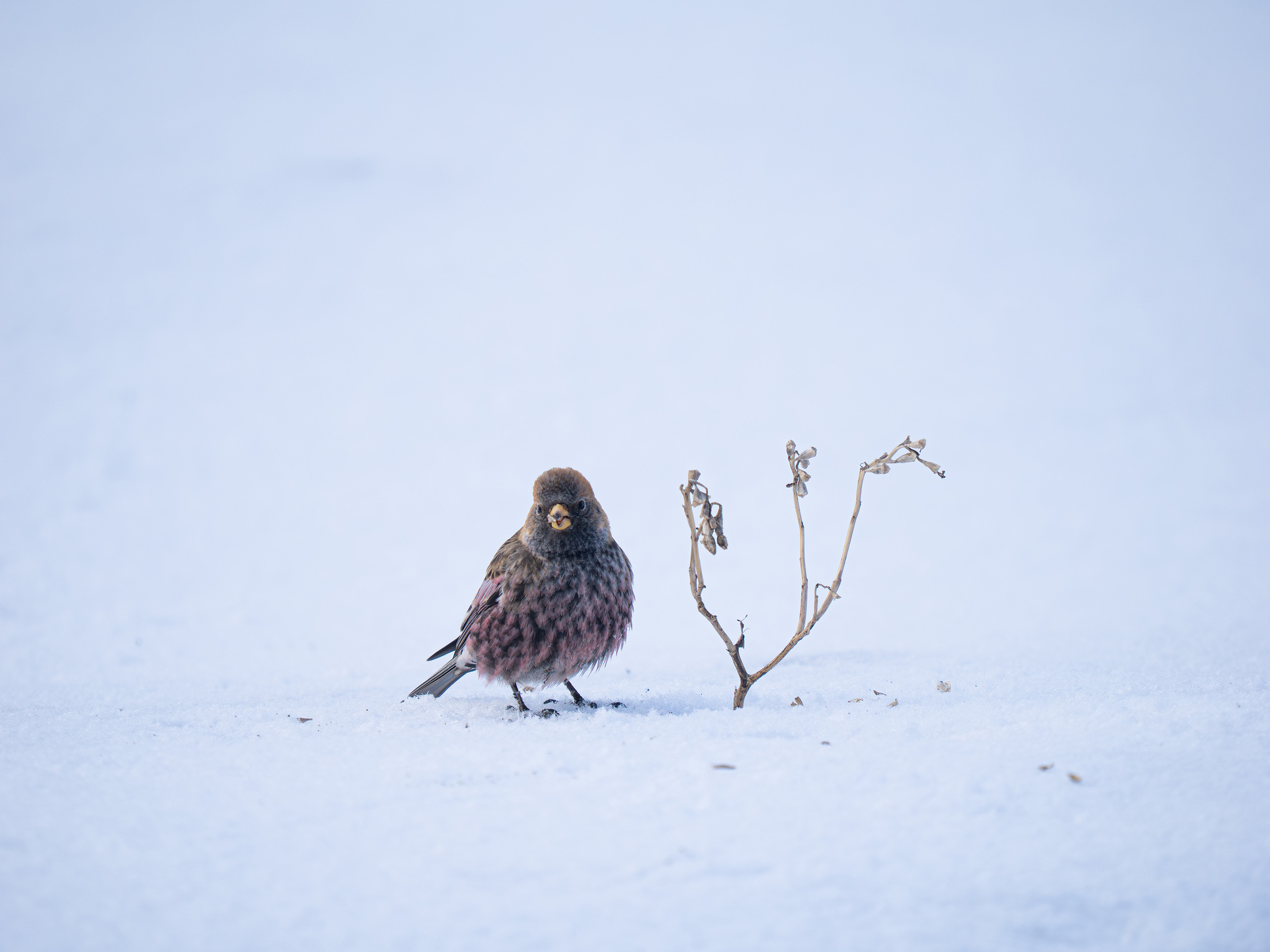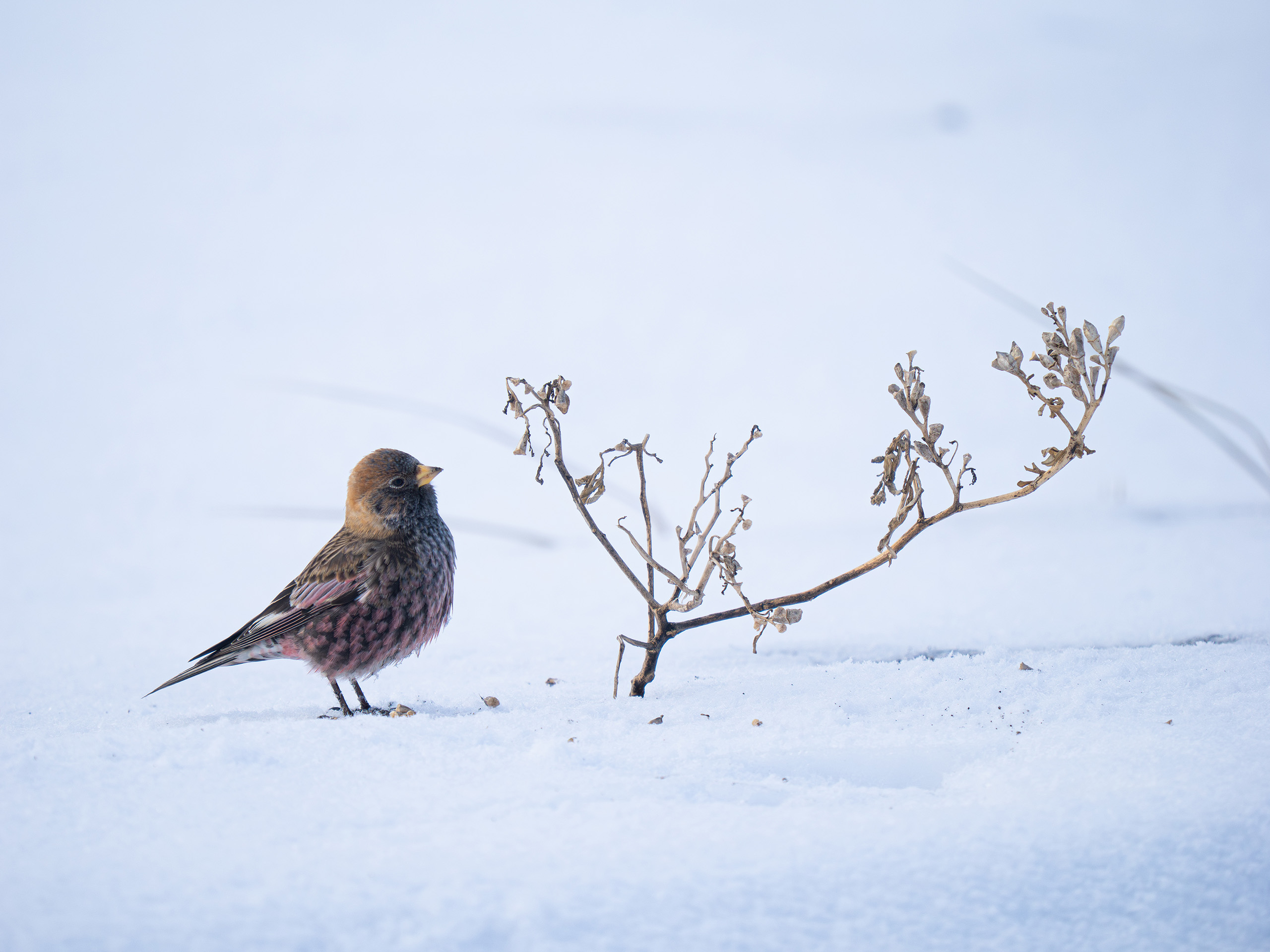 今回は、赤紫のお腹が美しいハギマシコをテーマに、その傑作写真を撮影するまでの撮影プロセスについて語って行こう。