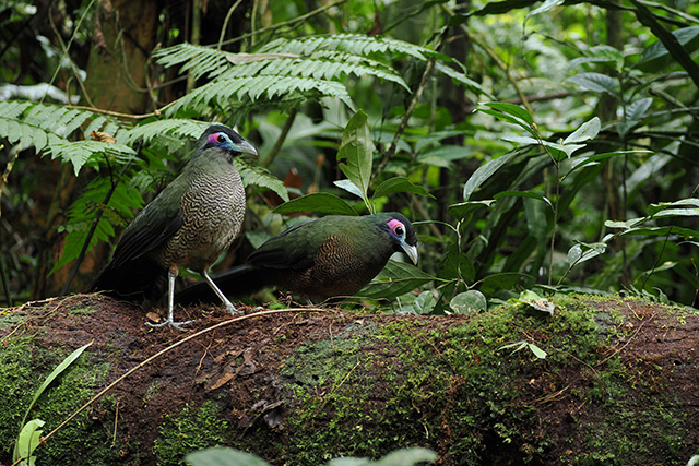1916年以降、約80年間まったく記録がなく、絶滅した可能性も疑われていましたが、20世紀末に劇的に再発見された、まさに幻の鳥です。生態はほとんど解明されておらず、このような雌雄ペアで撮影された画像は、生態学的にも貴重な資料となるでしょう。2羽ともに顔へしっかりとピントを合わせることができました。