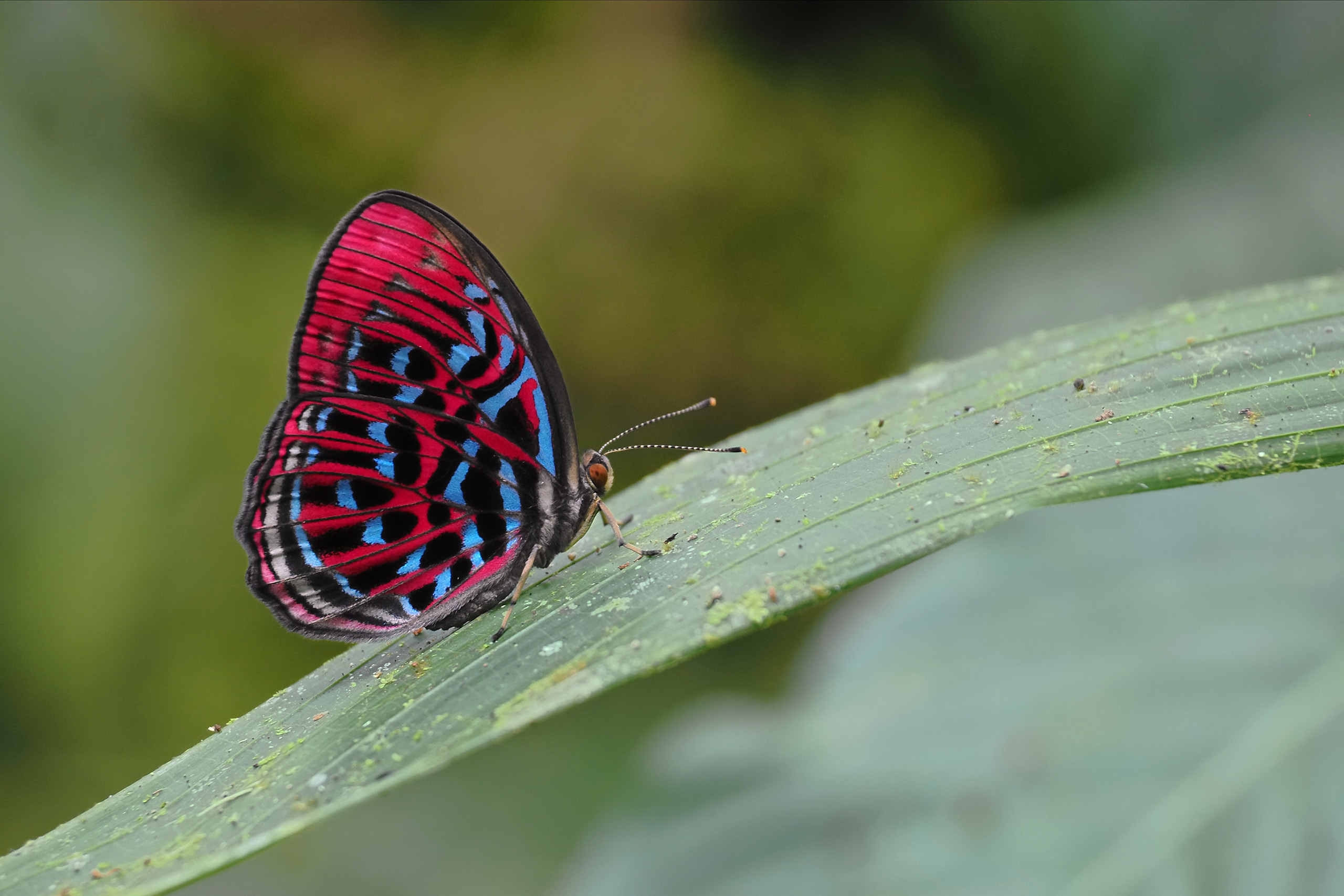 鳥を探して森の中のトレイルを歩いていると、すぐ近くにとても美しいチョウがとまりました。鳥を目的に訪れていても、こうした他の生き物をあわせて観察できるのも楽しみのひとつです。