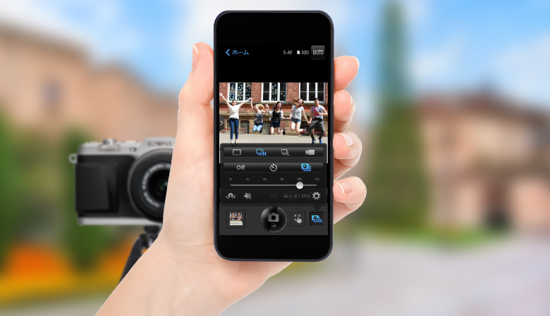 さらにすごいのがWi-Fi機能を使えばスマホがリモコンになってくれること。スマホをカメラの画面と同じように操作できてピント位置や露出の変更、レンズ操作までできちゃうんです。これがあれば一人旅の時に風景と自分を一緒に撮れますし、想い出の場所で二人だけの記念撮影やみんなでジャンプなんてシーンにも活用できます。写真が撮れたらWi-Fi機能を使ってスマートフォンに取り込んで、すぐにみんなとシェアしたり、SNSにすぐにアップできます。撮った時の新鮮な気持ちのままみんなとシェアできるというのは、今までになかった新しい写真の楽しみ方です。